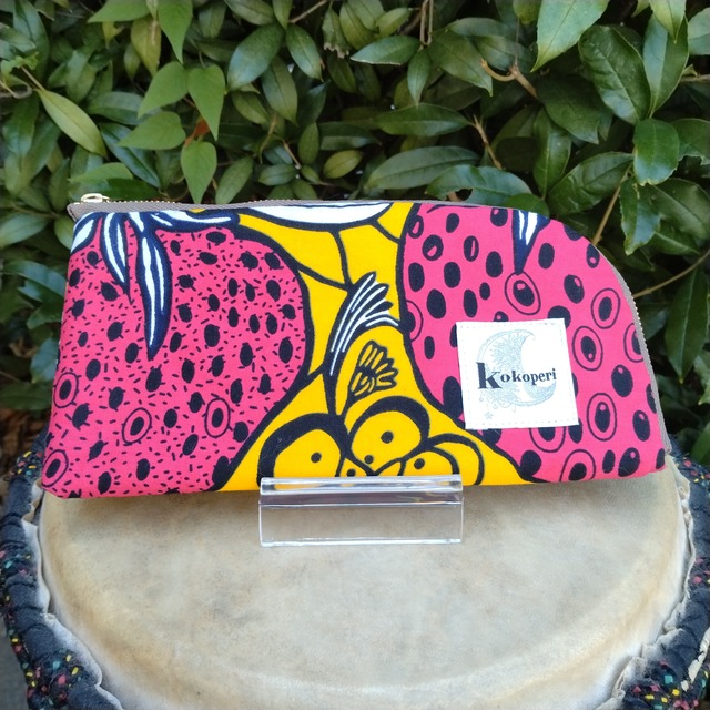 アフリカンファブリックのL字型長財布です。 アフリカンらしい普遍的ないちご模様の アフリカの伝統的な生地を使用し、 手作業で縫製されたこちらの財布は、 一つ一つが異なるカラフルで鮮やかなデザインが施されています。 カードポケット12枚 コインケース お札もすっぽりおさまります。 財布サイズは 縦10センチ 横21センチ 厚み1センチとなります。 世界中を旅するような気分にさせてくれるアイテム。あなたの日常を彩るカラフルなアイテムとして、是非お手持ちください。